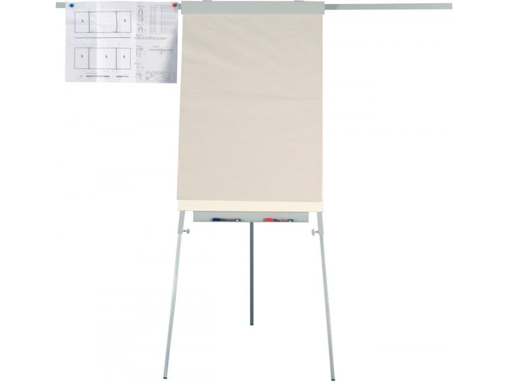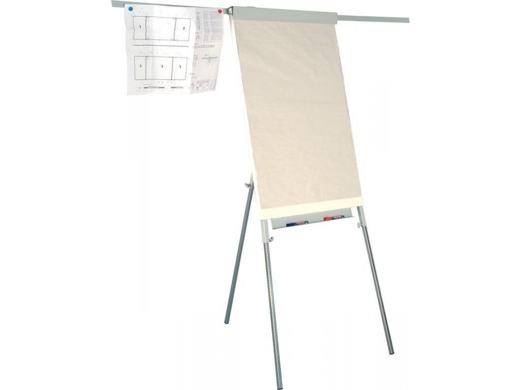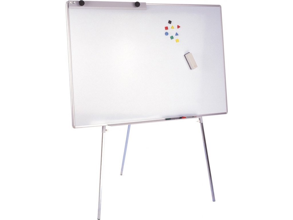Bílé magnetické tabule na trojnožce, výškově stavitelné, lišta na upevnění papírových bloků. L - povrch email 250°C.