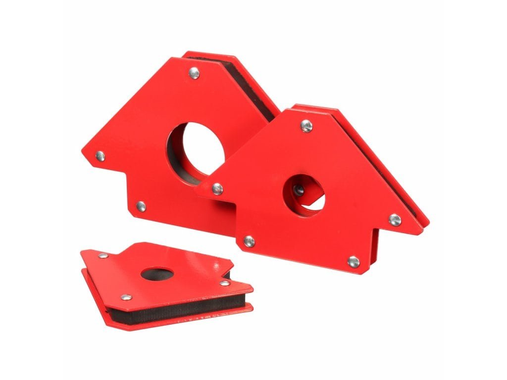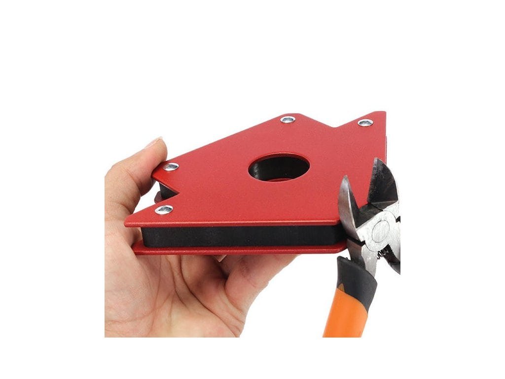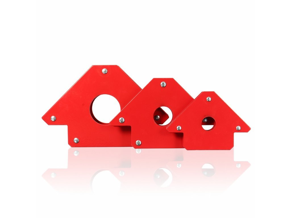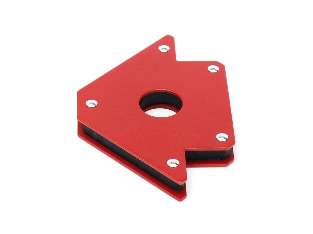 Magnetický úhelník slouží ke spojení svařovaných materiálů v úhlech 45°, 90° a 135°. Červeně lakovaný úhlový magnet je tvořen ze silného ocelového plechu a feritového magnetu. Magnetická síla magnetu je 23 kg.