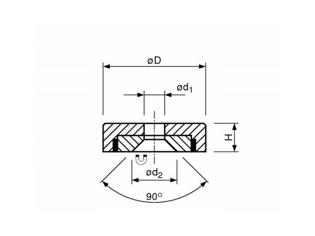 Průměr D: 60 mm | d1: 8,5 mm | Výška: 15 mm | Magn. síla: cca 135 kg | Teplota: 80 °C | Kruh s prohlubní pro M8