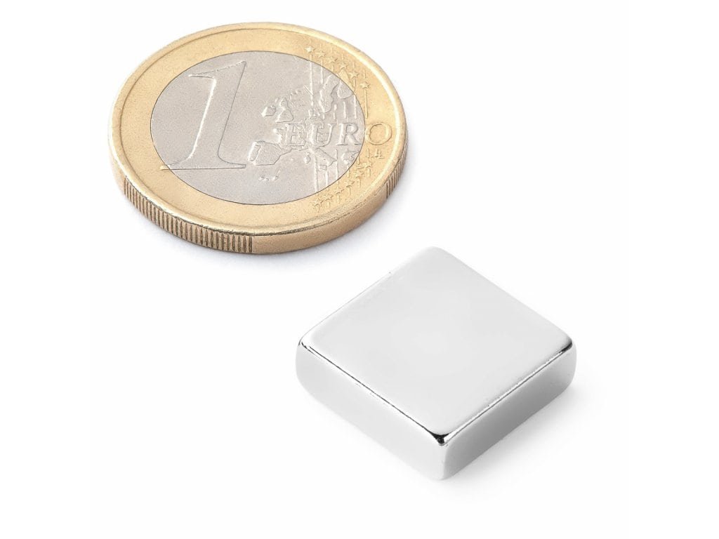 Neodymový magnet hranol 15x15x5 mm, N38, poniklovaný