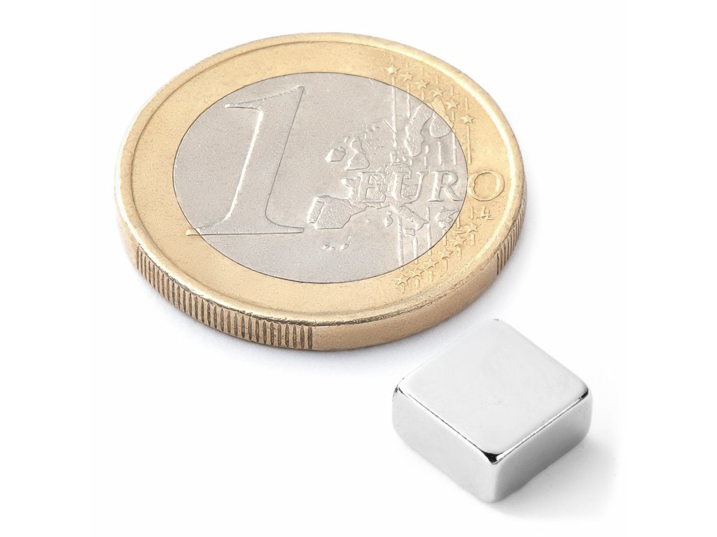 Neodymový magnet hranol 8x8x4 mm, N45, poniklovaný