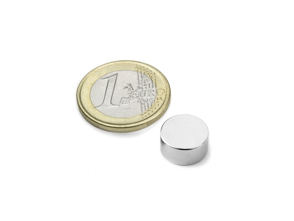 Neodymový magnet válec D 12x6 mm, Neodym, N42, poniklovaný, diametrálně magnetizován
