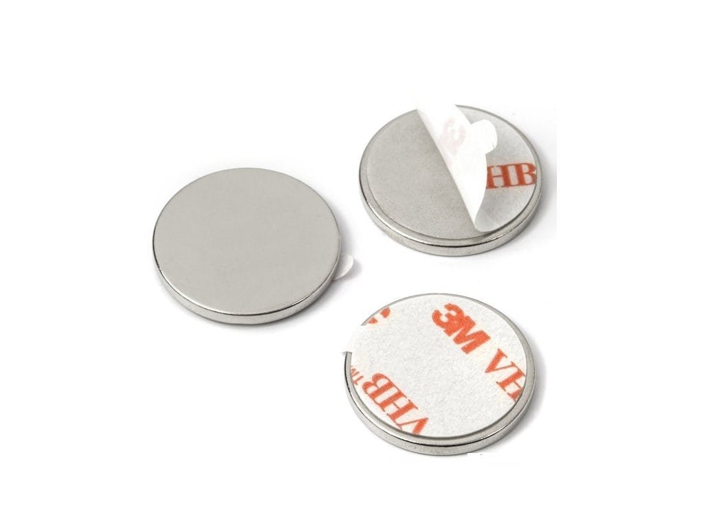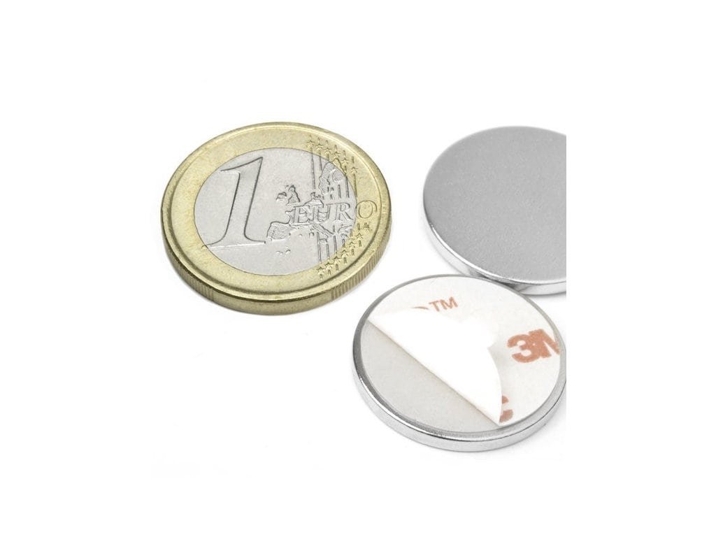 Neodymový magnet válec (samolepící) D 22x2 mm, Neodym, N38, poniklovaný