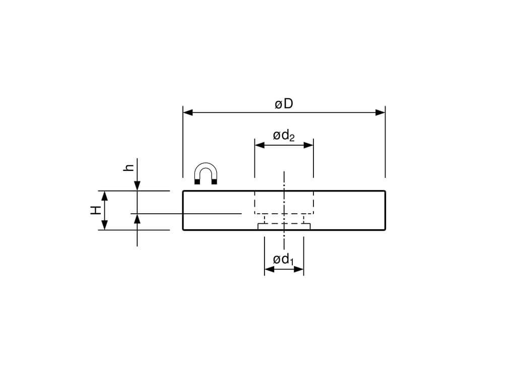 Sestava se skládá z neodymového magnetu válcového tvaru potaženého gumovou vrstvou. Tento magnet je pak opatřen středovým válcovým otvorem popř. kruhovým vnějším osazením pro přesné uchycení. Tuto sestavu nabízíme v sedmi různých průměrech a dvou barevných provedeních (černá a bílá).