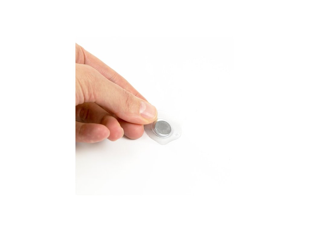 Tyto magnetické válce (12 x 2 mm) jsou zatavené v kruhovém plastovém pouzdru a disponují přídržnou silou okolo jednoho kilogramu. Je možno je všít do oděvů nebo použít ve vlhkém prostředí, aniž by zrezivěly.